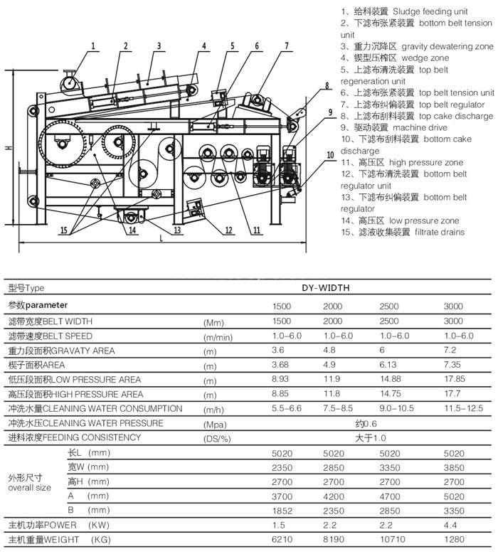 帶式壓濾機(jī)是固液分離機(jī)械設(shè)備中的一種。一般來(lái)說(shuō)只對(duì)微米—毫米級(jí)以上的固體粒子從液體(水)中分離有效。帶式壓濾機(jī)具有能連續(xù)運(yùn)行,自動(dòng)化程度較高、使用維護(hù)簡(jiǎn)便、操作工勞動(dòng)強(qiáng)度低等優(yōu)點(diǎn),可對(duì)絕大多數(shù)含粗顆粒的液體(水)進(jìn)行有效的固液分離。尤其是在水處理行業(yè)中應(yīng)用,進(jìn)行污泥脫水,降低污泥含水量,使污泥泥餅方便運(yùn)輸。故帶式壓濾機(jī)在該領(lǐng)域已得到廣泛的應(yīng)用。 我廠設(shè)計(jì)制造的SN-DY系列帶式壓濾機(jī),壓輥呈S型布置,被壓物料受壓力較小且緩和。既適用于有機(jī)親水性物料脫水,也可用于無(wú)機(jī)疏水性物料脫水。由于加長(zhǎng)了壓榨區(qū)的長(zhǎng)度,本系列壓濾機(jī)可對(duì)不同種類的物料進(jìn)行壓濾脫水。而且在污泥脫水行業(yè),礦山行業(yè)及化工行業(yè)都有豐富的壓濾脫水經(jīng)驗(yàn),而且得到了廣大用戶的一致好評(píng)。