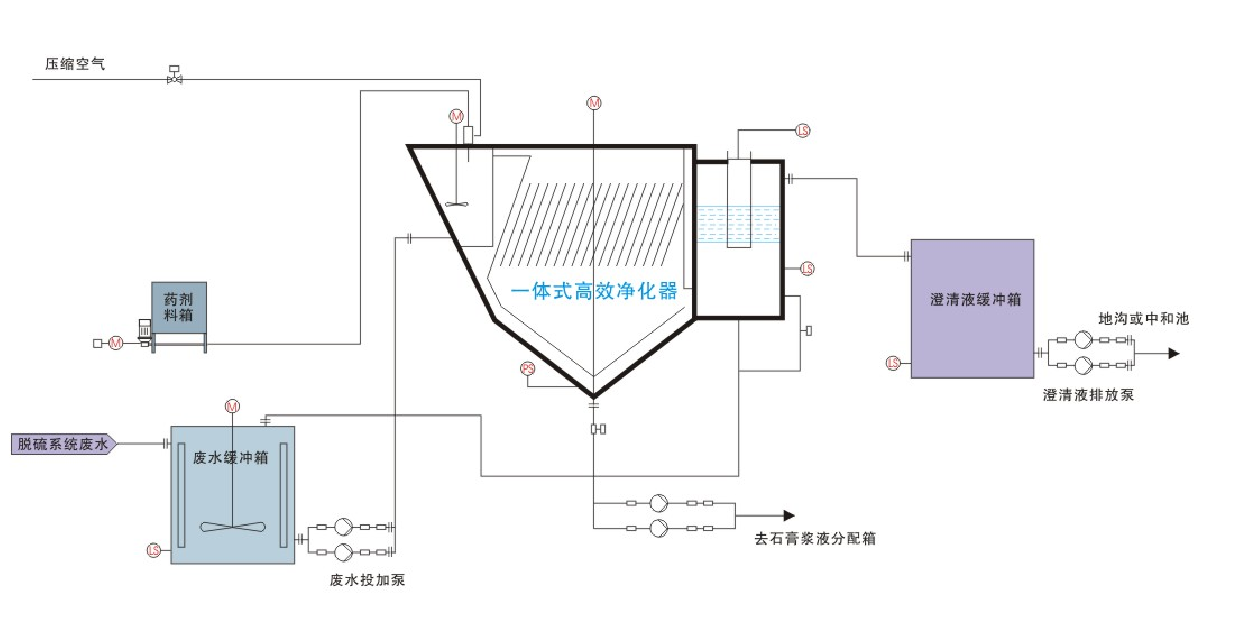 脫硫廢水“一步法”達標排放工藝的核心設備就是一體式高效凈化器。